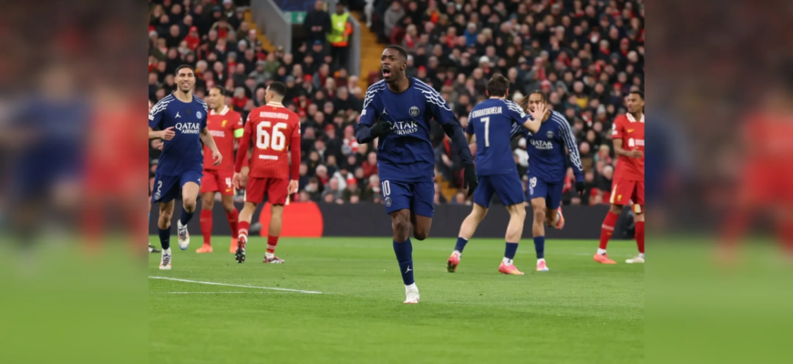ПСЖ уступал в счете 1:0 до начала матча, но Усман Дембеле сравнял счет уже на 12-й минуте на «Энфилде».