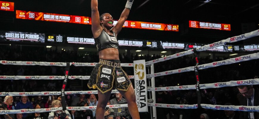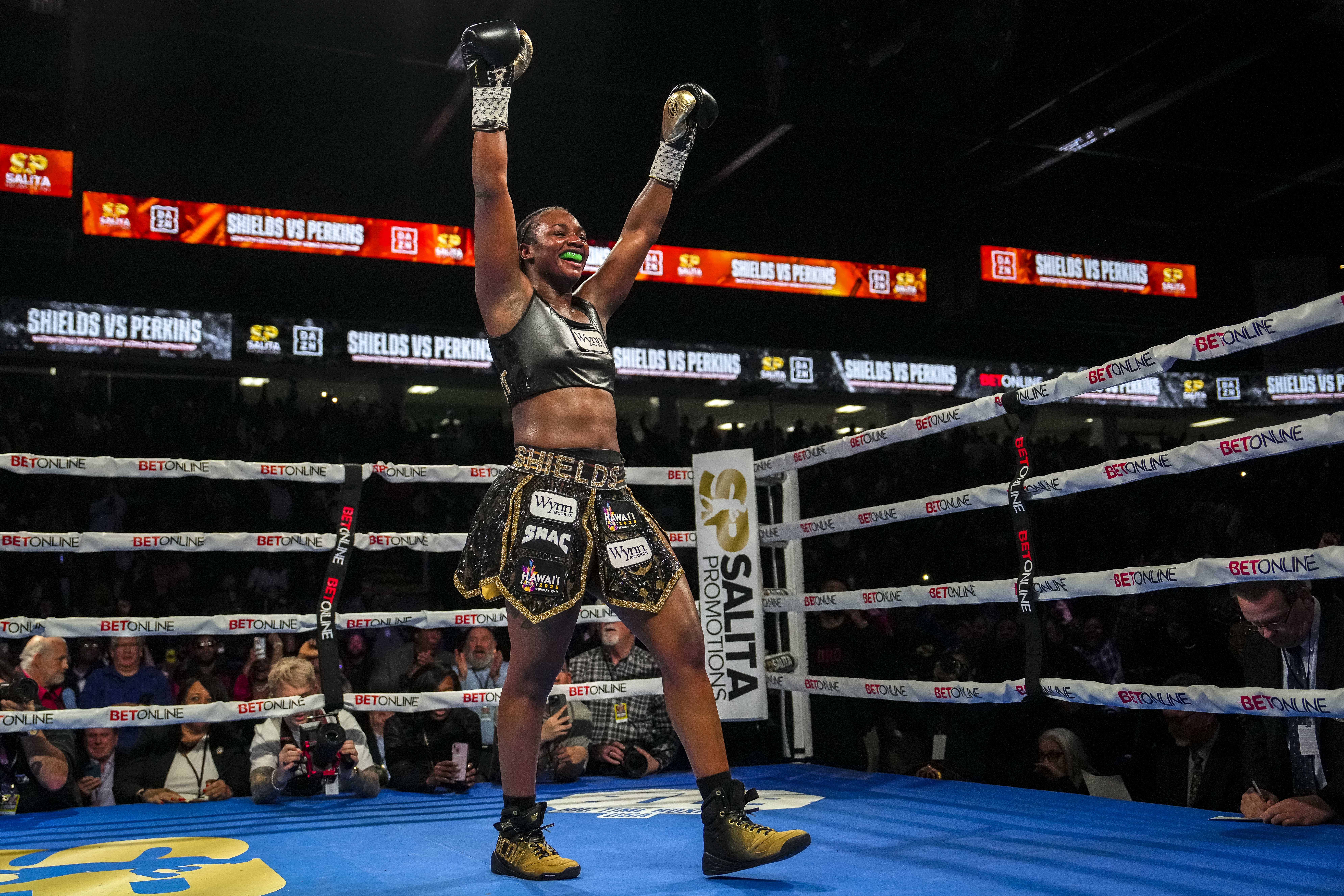 Бой между Шилдс и Перкинс состоялся в начале февраля во Флинте, штат Мичиган. На кону стояли чемпионские пояса WBO, WBC, WBA и IBF в тяжелом весе. После десяти раундов судьи вынесли вердикт со счетом 100-89, 99-90 и 97-92. В последнем раунде Перкинс была отправлена в нокдаун правым джебом.